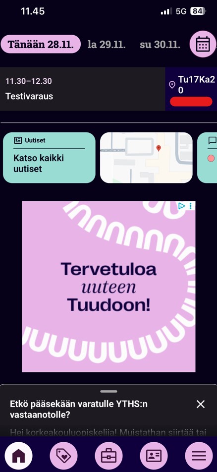 - Jos sinulla ei ole varausoikeutta, tilan kohdalla lukee punaisella Et voi varata
