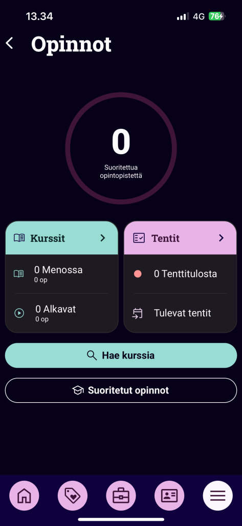 Jos lukujärjestyksessäsi eivät näy kaikki ne toteutukset, joiden pitäisi näkyä, valitse päävalikosta Opiskelinan palvelut ja sieltä Opinnot. Käy läpi tarvittaessa sekä tulevat kurssit että meneillään olevat kurssit ja klikkaa niitä opintojaksoja, joiden aikataulut haluat näkyviin Tuudon lukujärjestykseen. Kurssin tiedot -ikkunasta löytyy Seuraa kurssia -painike. Klikkaa sitä ja saat opintojakson toteutusaikataulun näkyviin lukujärjestykseesi.
